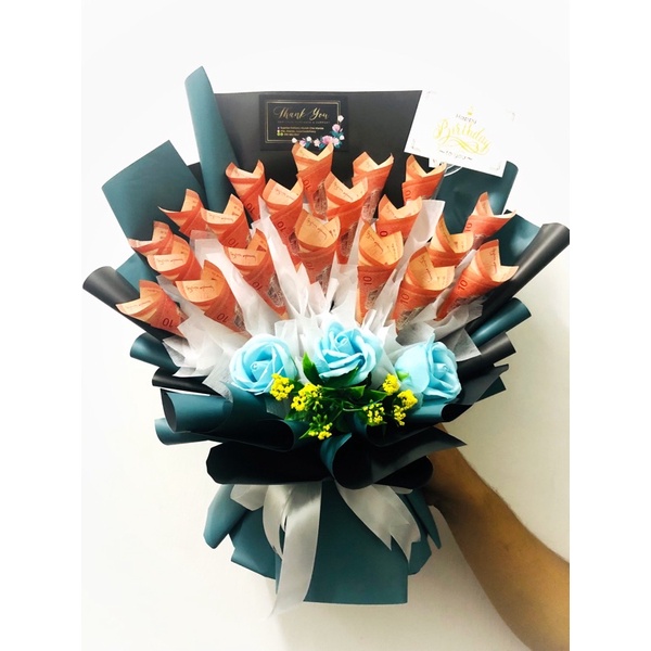 3/5 x rm10 cash money bouquet | 钱花束bunga bouquet duit cash handmade preserved dried flower bouquet rose birthday gift.